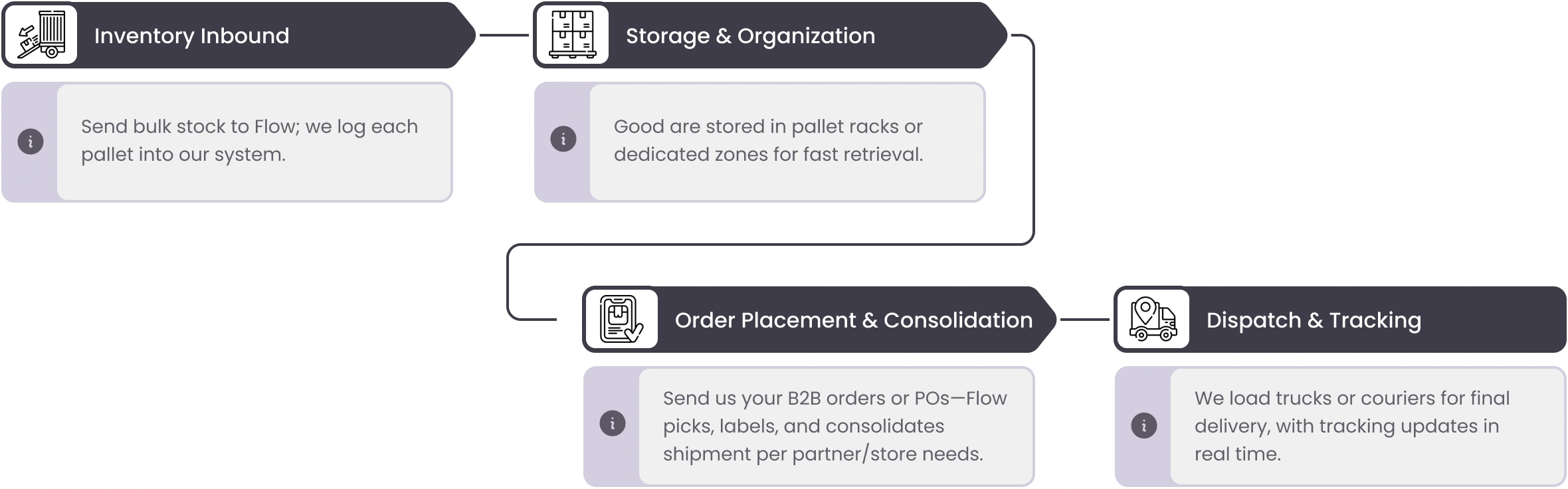 Cut overhead, ensure compliance, and deliver on time with Flow's wholesale fulfillment service.